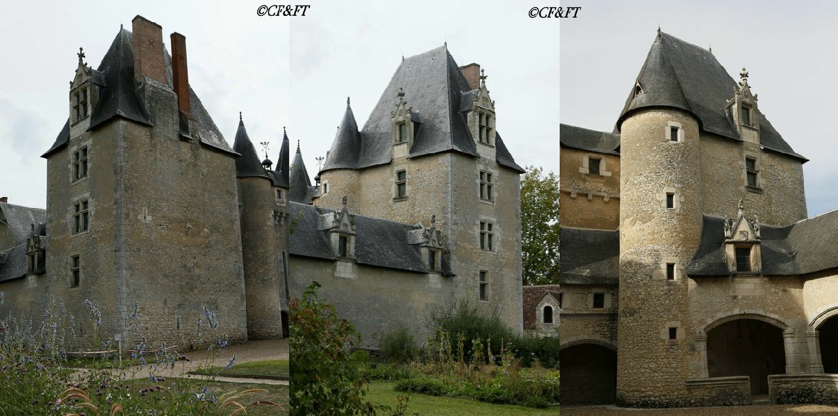 Le château, face nord, se présente encore sous l'aspect d'une forteresse (chemin de ronde couvert sur mâchicoulis, porte à pont-levis à flèche, donjon rectangulaire [construit entre 1475 et 1499], archères-canonnières et tour circulaire d'angle). Sa cour intérieure donne, à l'est, sur une galerie ouverte, aux arcades surbaissées ; elle-même surmontée d'une galerie couverte. Au sud et à l'ouest, se dressent deux logis, édifiés vers 1450-1475. Le logis sud conserve, sur son mur extérieur, une porte à pont-levis à flèche (donnant sur le jardin). Le revers de la façade nord est une habile combinaison de volumes et de toitures.