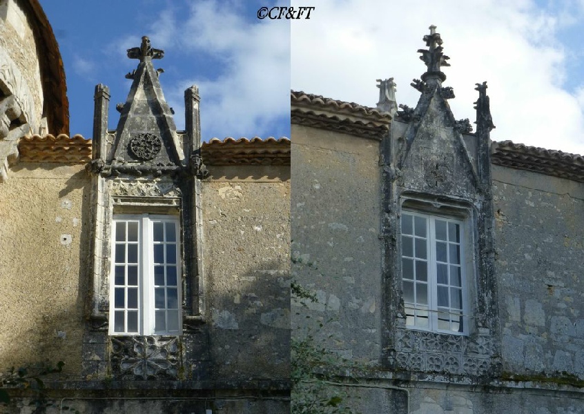 1/ maison noble, avec leschelle (escalier) à vis, comprenant les quatre salles et chambres, tant hautes que basses... partie de la basse-cour commençant au coin jusqu'au guichet (petite porte), du côté de la tour dicelluy (nommée tour du guichet ?).
