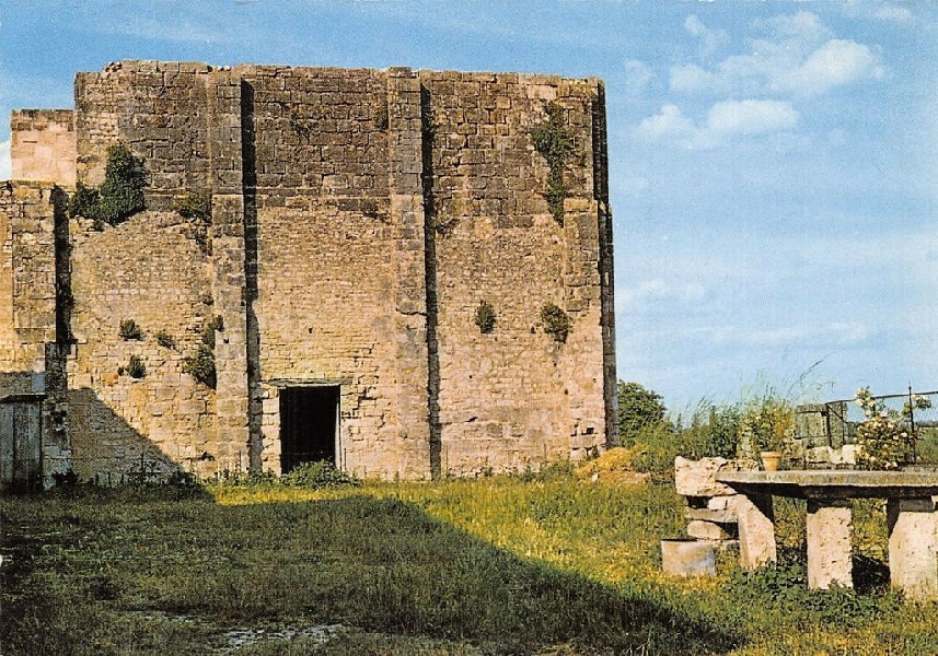 Si André Châtelain et Charles-Laurent Salch datent l'enceinte, encore présente face sud, du XIIIème s., Jean Mesqui date les deux tours pleines de la porte d'entrée (à herse ou assommoir), de la fin du XIIème s. Il y voit le style Plantagenêt.