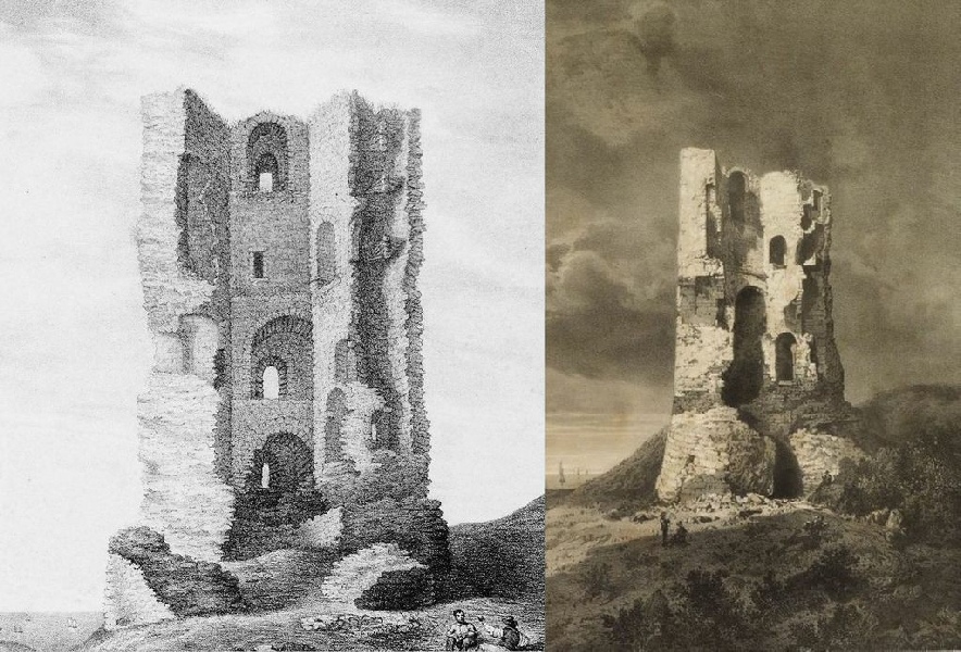 A l’est de la tour, une masse de terre longue de 200 m peut être identifiée comme la courtine sud du château. D’autres masses de terre pourraient correspondre aux bastions construits par le duc de Mercœur au XVIème s.. A l'extrémité orientale se trouvait, en 1814, la tour de la Paurette -falaise en breton- (base Mérimée).