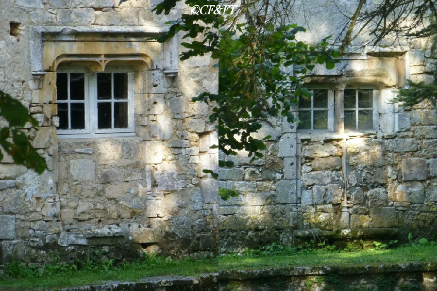 3/ maison ou chasteau du côté de la cour comprenant seulement les hautes et basses chambres et soulier (cellier ?)...Et la place estant au bout de la maison pour y édifier des autres chambres... ensemble de la basse-cour depuis le grand portail.