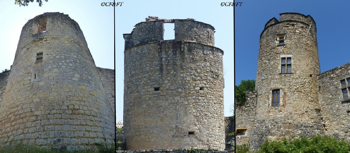 Le château se compose, au sud, d’une enceinte rectangulaire (31 m x 23 m) flanquée de quatre grosses tours circulaires (9 à 12 m de diamètre). Un logis en équerre prend place au revers des fronts sud et ouest. Une galerie sur cour, couverte de croisées d’ogives s’appuyait sur celui de l’est. Sur la face nord, subsiste une tour à éperon -du XIIIème s.- qui protégeait l’entrée. Au-devant, une avant-cour/barbacane à tour d’artillerie renforce cette défense.