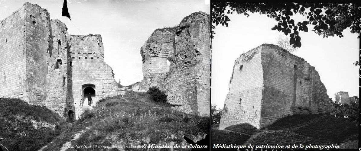 Guillaume Roger, frère du pape avignonnais Clément VI, prend possession de la place forte de Beaufort en 1342. Il trouve une motte circulaire avec à son sommet, une tour-porte et une « vieille salle ». Il restructure le site de 1347 à 1350 : élévation de la tour-porte, construction d’une enceinte sommitale, d’une grande salle sur deux niveaux de caves bâties dans le fossé et, à flanc de motte, deux tours rectangulaires (seules encore en élévation). Un siècle plus tard (en 1455), le duc René d’Anjou fait bâtir dans la partie nord du site, une tour octogonale dont la base s’enfonce dans un talus rectangulaire. La jonction se fait par deux éperons de curieuse facture (Jean Mesqui). Le château est en grande partie détruit au XIXème s. (documentation locale).